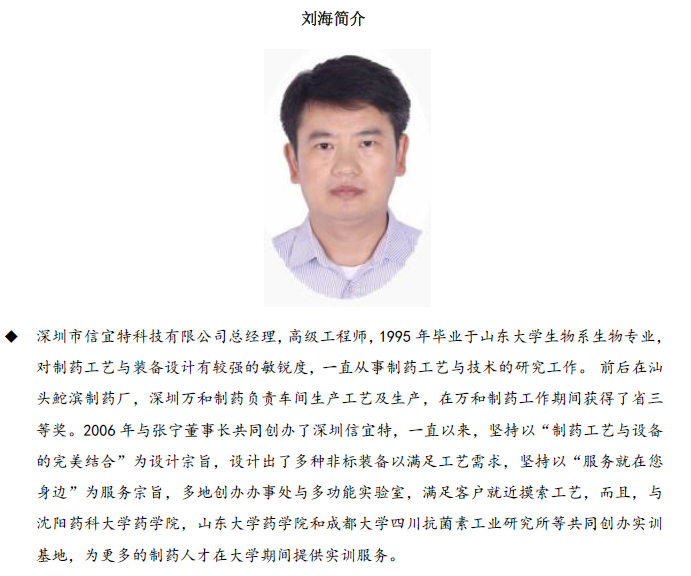 隨著2018年底的臨近,很多口服固體制劑一致性評價項目都到了重要節點,如何在最后的關鍵時刻讓項目有個完美的結局成為制藥同仁的共同心聲。為此,深圳信宜特與丹東百特聯合舉辦蘇州技術交流會,本次會議在北京會議的基礎上又擴大了會議規模,延長了會議時間,更重要的是我們根據廣大客戶要求,增加了專家,擴展和豐富了會議內容,本次專家有崔福德,謝沐風,陳洪,姜海濤,劉瑞明,劉怡,李雪冰,郭玉申和劉海等,他們或是粉體學和固體制劑工藝研究的實戰專家學者,或是溶出研究大咖,或者在放大實驗和BE實驗中積累了豐富經驗,或者為逆向工程大咖和晶型專家等等,將會為大家帶來前所未有的知識盛宴。歡迎制藥同仁踴躍報名參會。