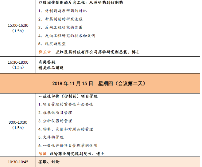11月15日,9:00-18:00,會議第二天,三位專家講座,免費午餐;