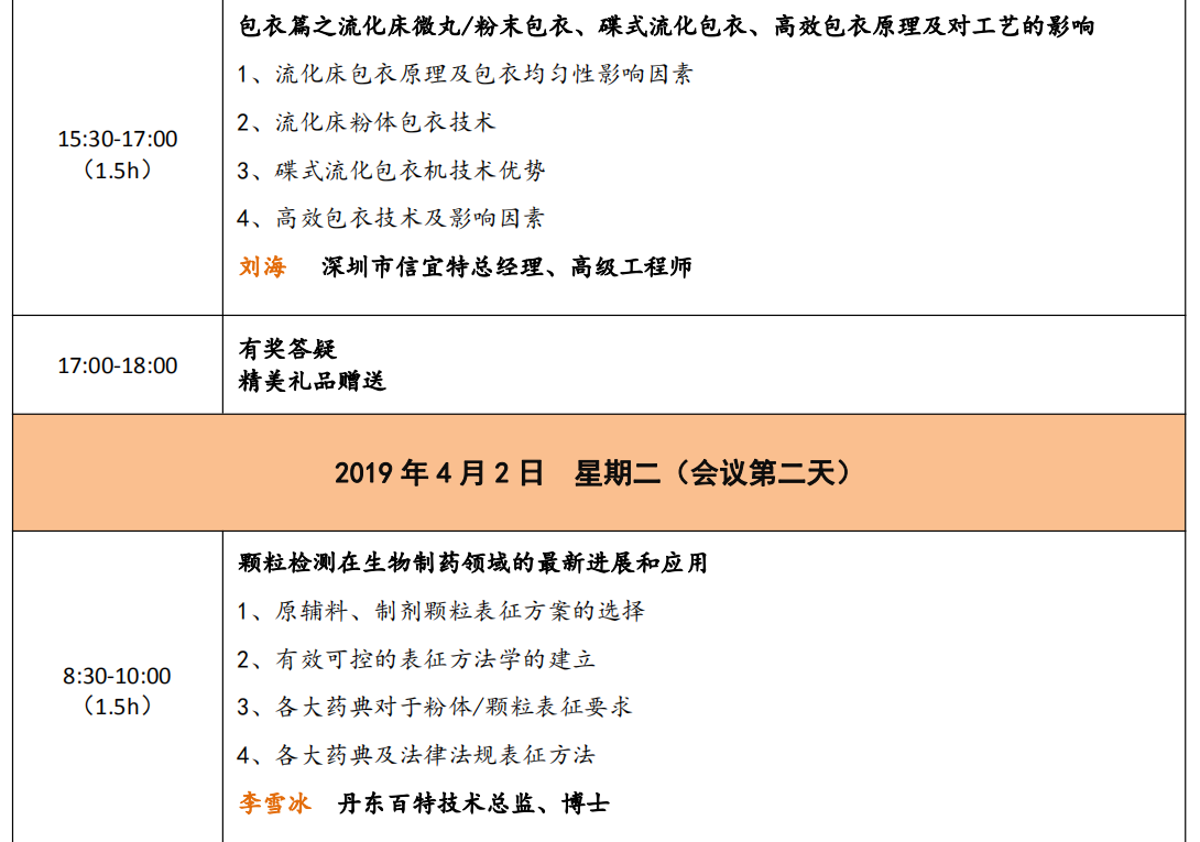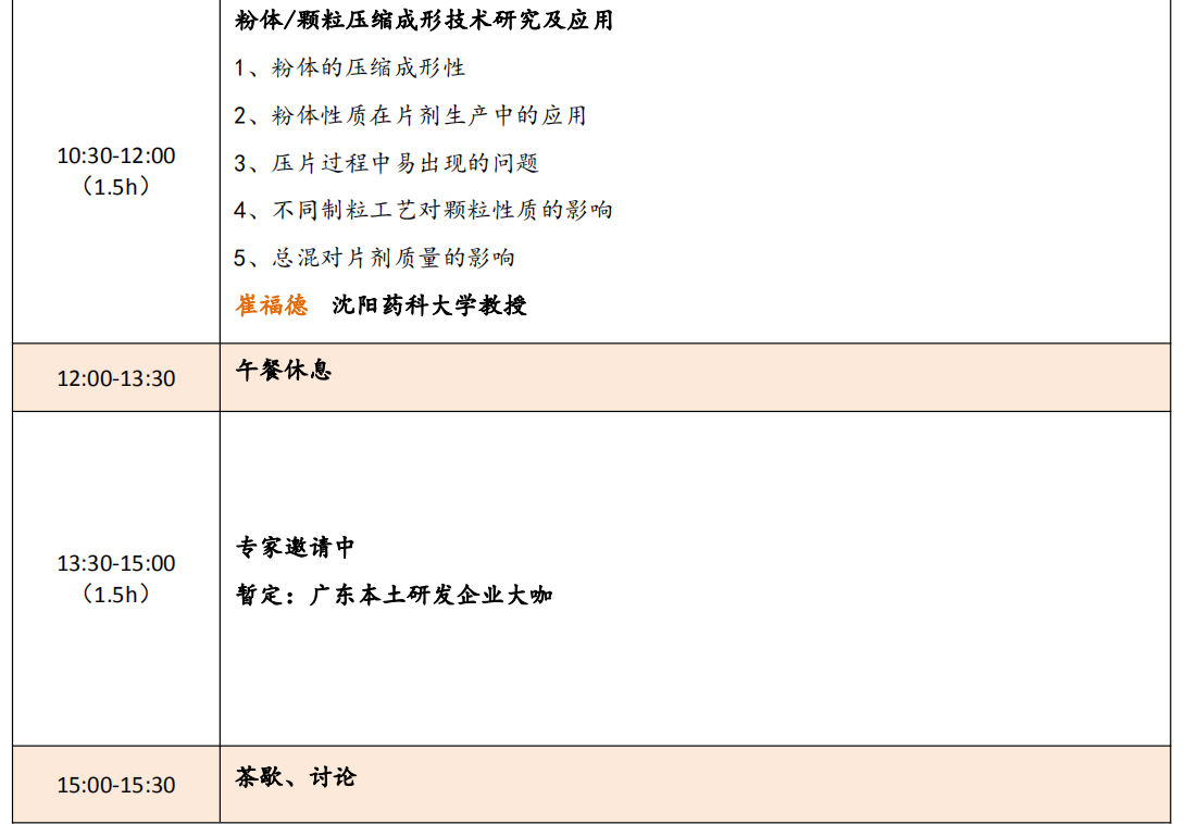 藥品一致性評價大限取消讓人雀躍,但實際卻對我們制藥人提出了更高要求, 我們還要本著初心不改、目 標不變、力度不減的原則繼續砥礪前行,為我們崇高的 健康事業保駕護航。鑒于此,我們深圳信宜特聯合丹東百特舉辦廣州技術交流會, 為大家進行政策解讀和實踐經驗分享。本次會議議程三天,邀請專家有崔福德、謝 沐風、姜波、劉宏飛、李雪冰和劉海等,其他專家還在邀請中。專家們將從粉體/ 顆粒學特征參數和壓縮成形技術、溶出度試驗的深刻解讀、仿制藥國內注冊經驗分 享、粉體包衣技術介紹及其在液體緩釋混懸劑中的應用、MAH 解讀及對GMP生產合 規的要求、顆粒檢測在生物制藥領域的最新進展和應用、制劑設備原理及工藝影響 分析等方面進行深入的闡述,相信能給大家帶來不同收獲,期待您的參與!