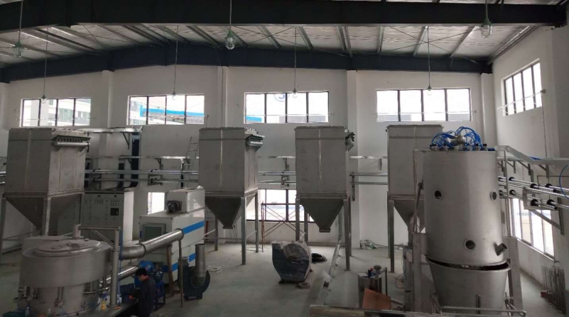 濕法制粒/擠出滾圓/流化床干燥/碟式包衣生產線已經發出在廠家進行安裝調試中